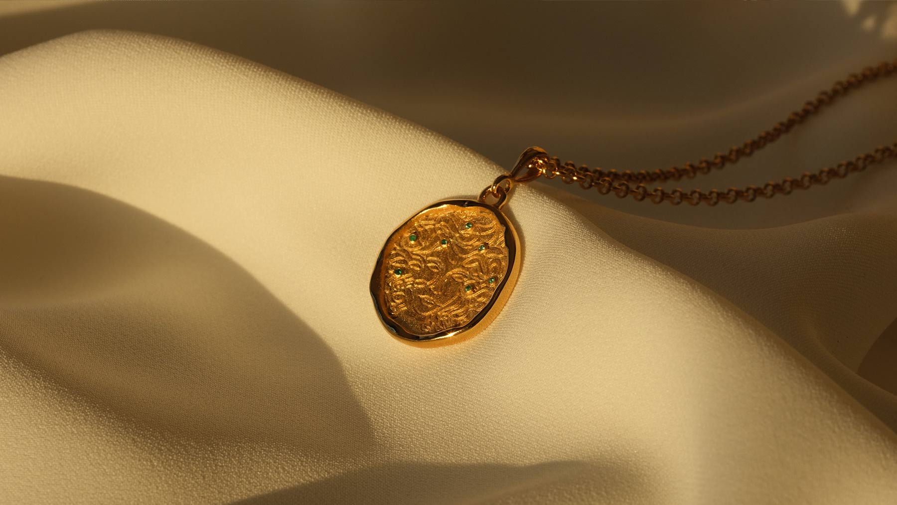 Honor your inner medusa and complete your collection with the cult-favorite statement medallion with seven emeralds, molten gold ring, or our brand new molten mini medallion.